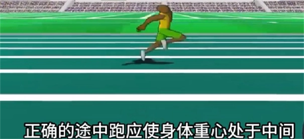 2、正确的途中跑需要让身体重心保持在中间位置,如此才能使蹬腿动作更充分。