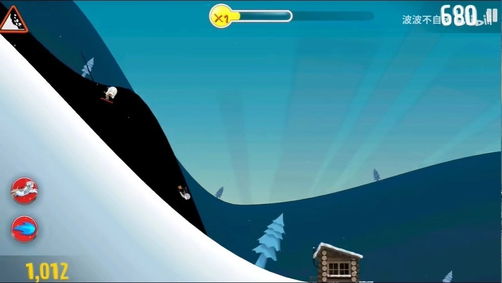 3、向终点全力冲刺,避开更多危险,跨越难度更高的障碍物,为你的滑雪装备升级。