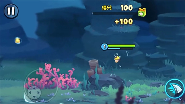 操作上完全不用顾虑,稍微尝试几下就能熟练操控小鱼移动,而且还能随时启用加速功能。