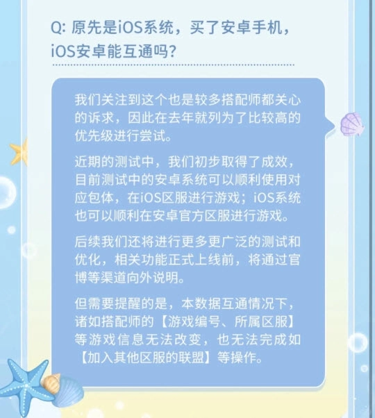 近期的测试已初见成效,目前安卓系统在测试中能够正常使用对应包体进入iOS区服游玩,iOS系统也可顺利进入安卓区服进行游戏。