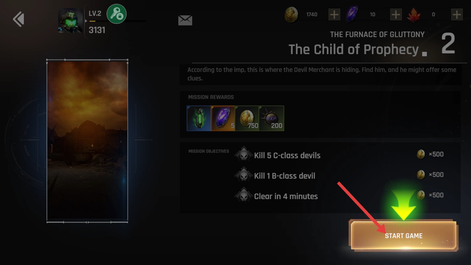 1、点击【START-GAME】启动游戏,查看任务目标,清楚需要消灭C级与B级恶魔,并且要在4分钟内完成通关,以此获取相应奖励。