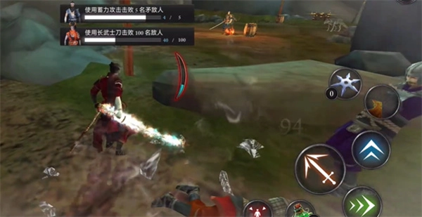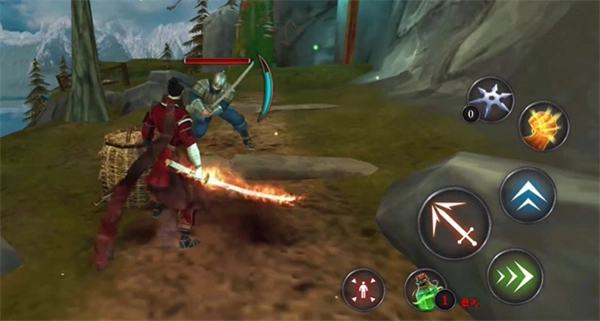 左侧的虚拟按键可操控角色移动,右侧则对应跳跃、飞镖等技能按键。