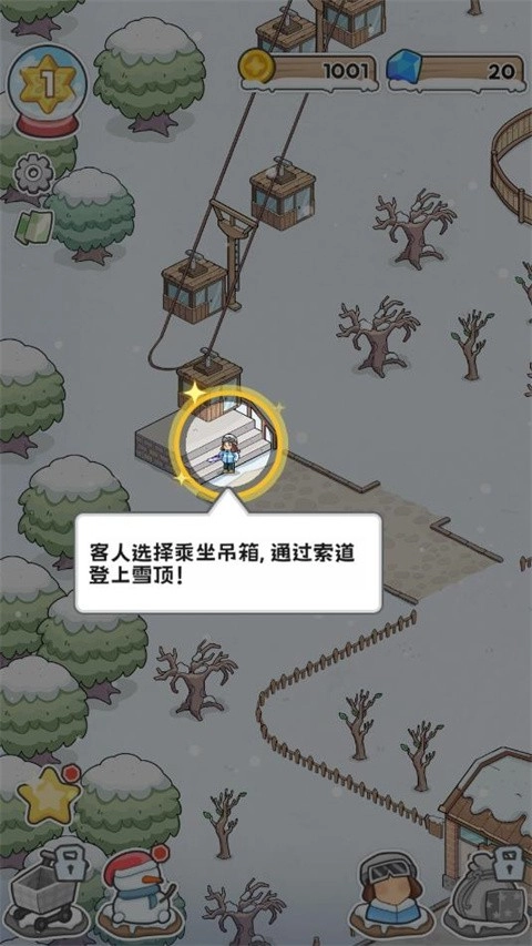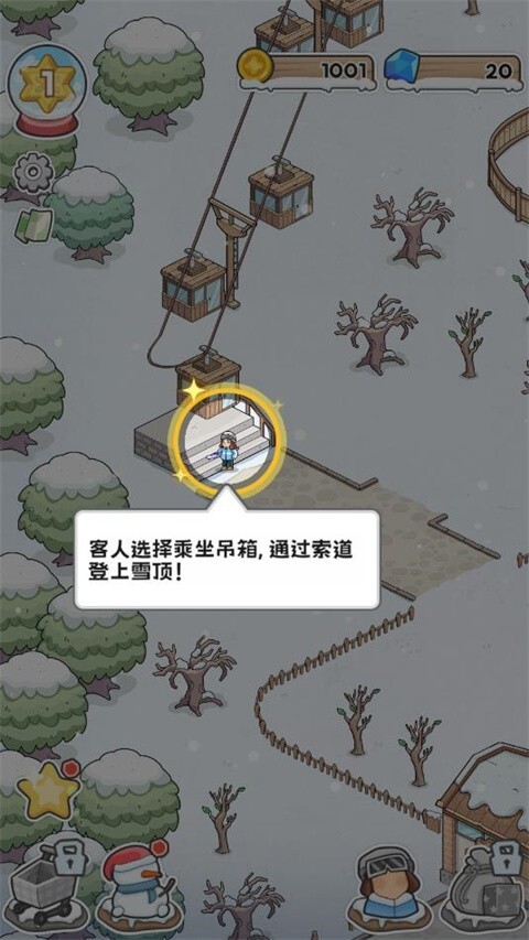 3、身为老板,你要负责滑雪场所有相关事务的管理,涵盖场地挑选、设施搭建、员工招募以及日常运作等方面。