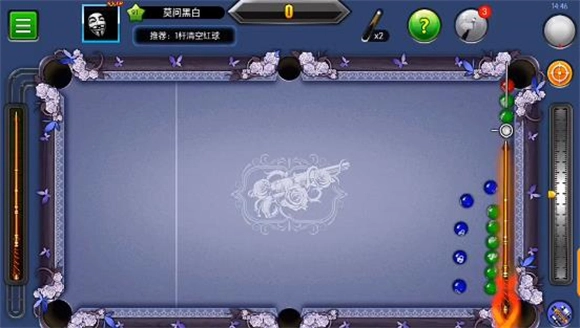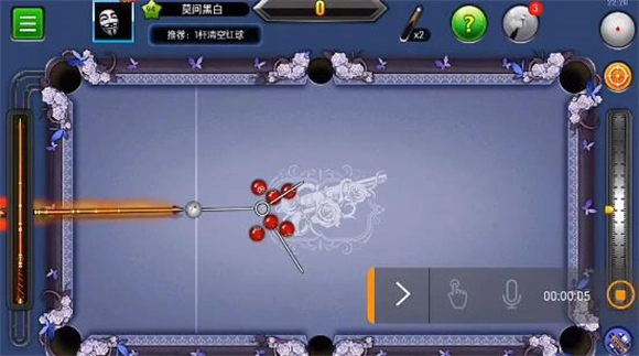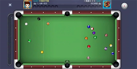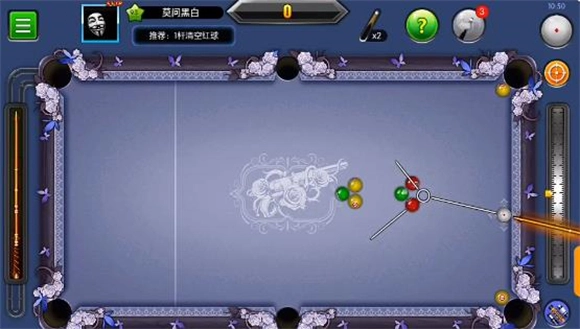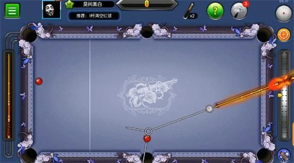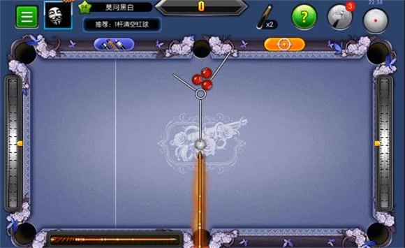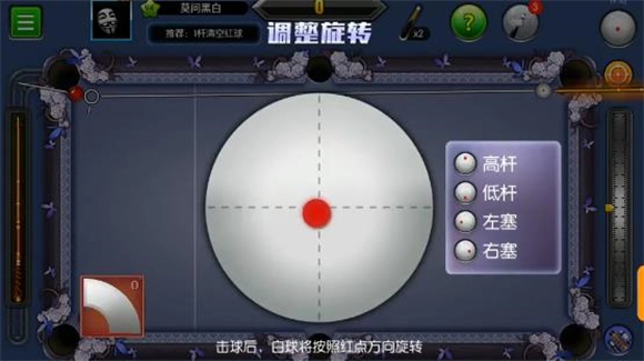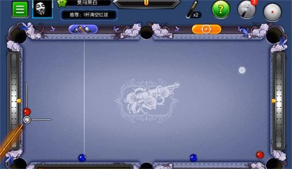 3、这一关操作起来稍显繁琐,大家可以依照图示的位置摆放白球,瞄准下方的中袋后全力击球。接下来留意第二个红球的行进路线,它会通过四库反弹后落入下方中袋。要是第二个红球的路线出现偏差,只需微调一下塞位,往上或往下稍微调整一点点即可。