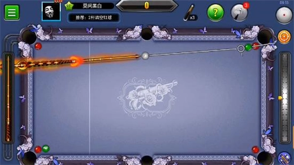 1、每次瞄准绿球时,只需留出一点分离角,就能把另一侧单独的红球磕进去。