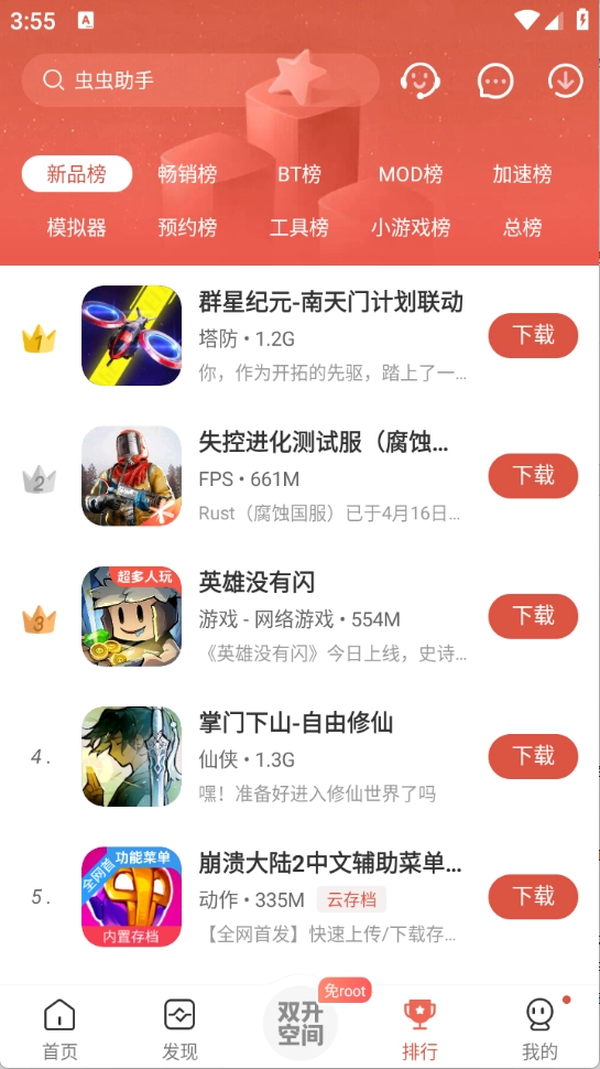 3、“排行”页面会依据游戏当下的热度情况,对游戏进行智能排序。