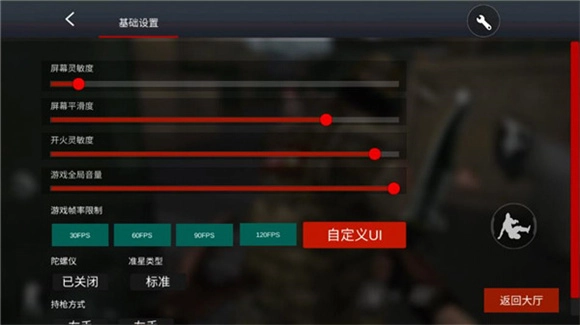 5、游戏开始前要先搭配好武器装备,并调整到自己觉得舒适的灵敏度