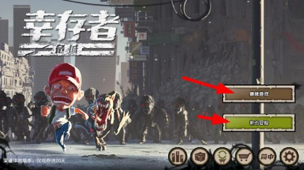 1、玩家第一次进入游戏时,需要在继续游戏和开启新冒险这两个选项中做出选择。