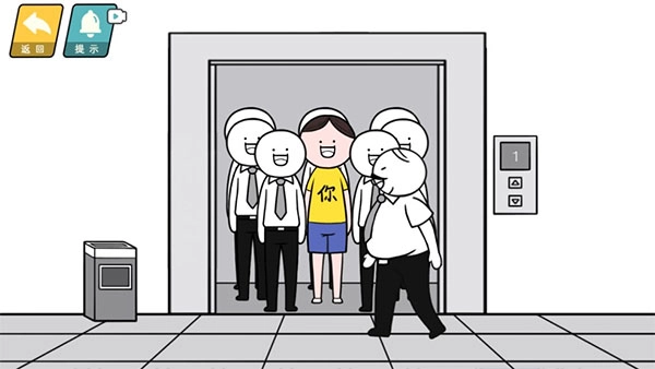 上班乘电梯时碰到了领导,便操控人物往电梯里挤,好给领导腾出位置。
