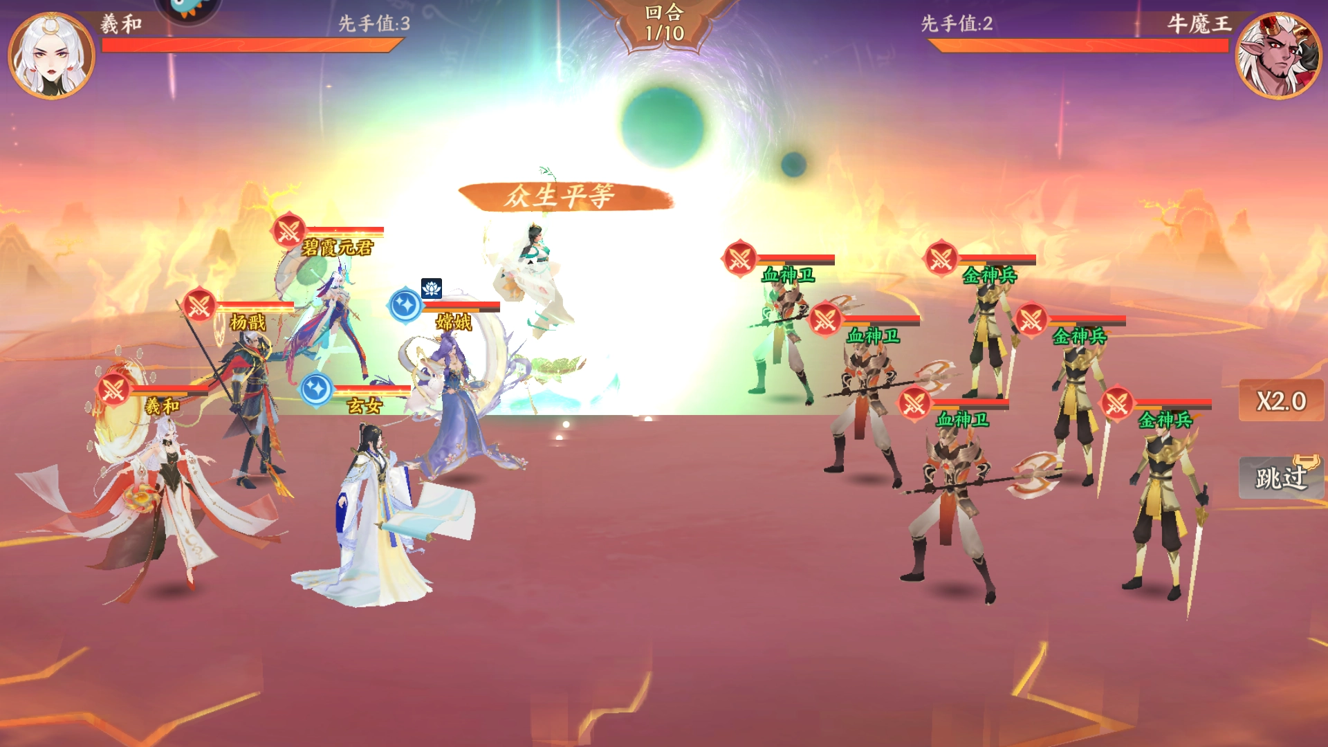 【组队思路】:观音负责提供怒攻免疫的保护效果,碧霞元君率先发动群体攻击,羲和执行精准的单体斩杀,再搭配杨戬与碧霞元君构建出高效的连击链条。