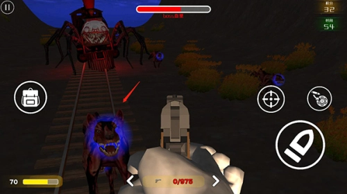 5、把武器对准怪物火车进行射击,命中后Boss的血量就会下降。