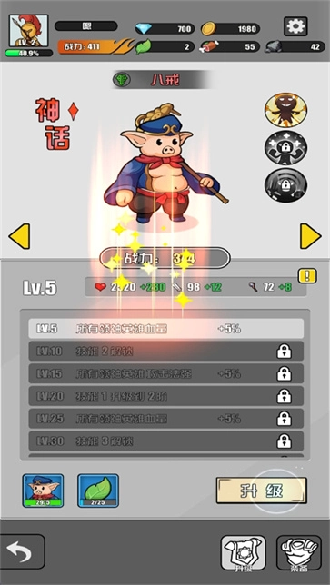 1、有英雄临时升级系统,可以进行肉鸽三选一。