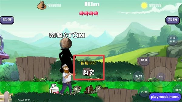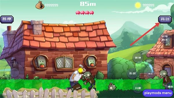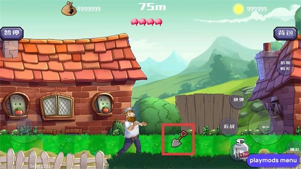 2、操控戴夫移动并攻击僵尸,同时可点击右上角“背包”按钮,查看或使用已获取的道具资源。