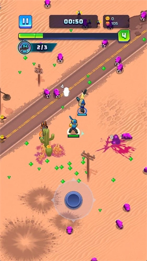 2、进入地图后滑动摇杆可以控制角色移动,角色会自动攻击出现的虫子。