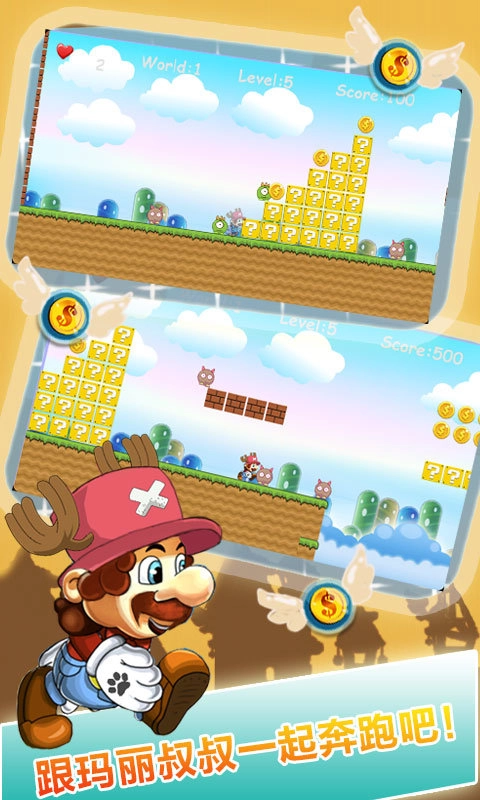 1、经典游戏回归:《奔跑吧马里奥》是经典掌机游戏的手机版本,保留了原版游戏的核心要素,包括马里奥、公主桃花和恶龙卡扎。玩家可以在手机上重温儿时的游戏回忆。