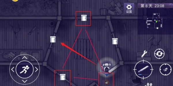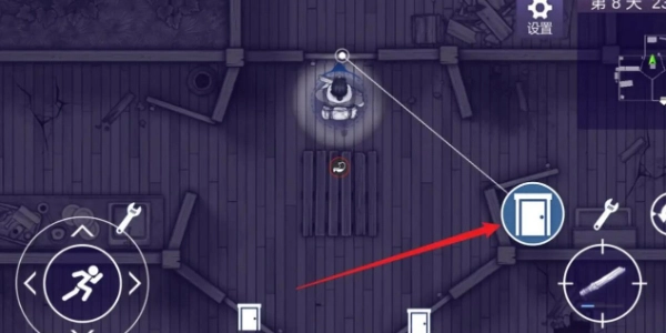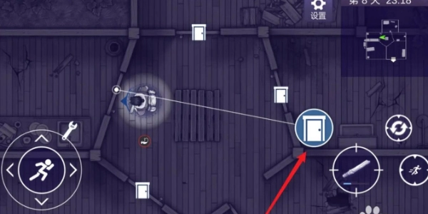 3、接着移动到左侧的房门前,点击开门即可将上图所示的红色三角形顶点对应的房门关闭。