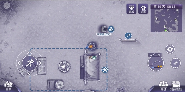 :在游戏中自由冒险,不断寻找有用的道具和装备可以帮助你取得更多的胜利,还要注意衣食住行。