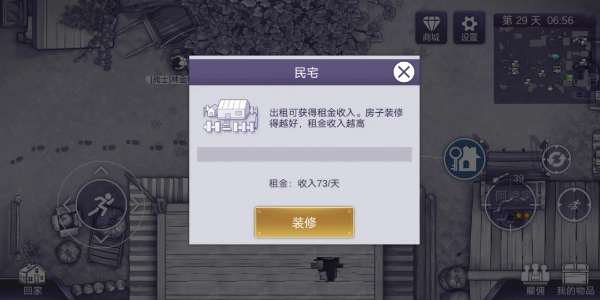 玩家在打完关押点之后可以解锁租房功能,目前游戏中将租房家具叠满最多每日获得73个银币。