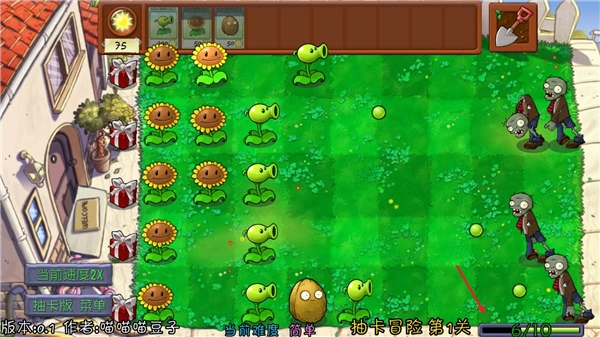 2、对局中通过种植植物来抵御僵尸的进攻,右下角还会给出僵尸进攻的进度。