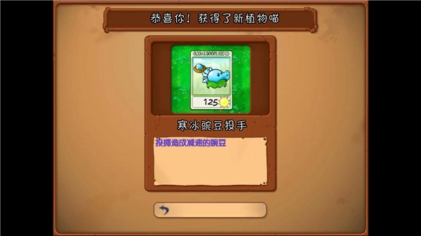4、例如这里我们就获得了寒冰豌豆投手,不会像正常的冒险模式一样获得植物。