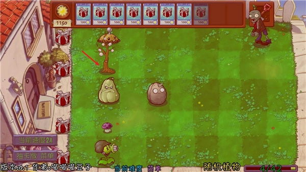 1、白色低级卡(15%概率抽取):三线射手、裂荚射手、豌豆投手、低坚果、双线射手、反向豌豆射手。