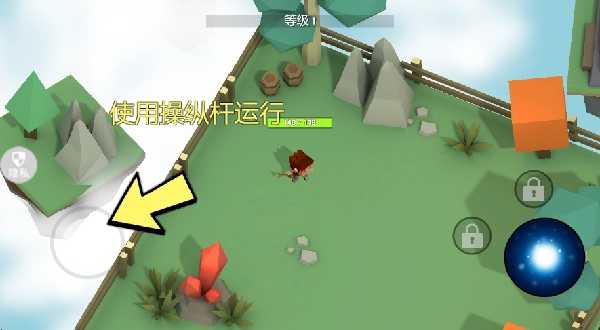 1、进入游戏后就直接进入到新手教程,左下角控制角色的方向进行移动。