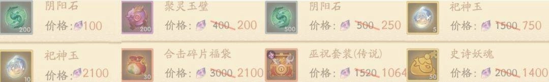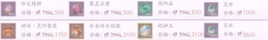 就像上图展示的那样,广寒试炼和业火洗礼这两个玩法每天都会上架游戏内刚需的资源,并且给出的折扣都相当可观。这里非常建议大家尽可能把能买的都入手,但考虑到部分零氪玩家妖魄储备有限,再加上开服第八天业火洗礼才会解锁,所以想把所有资源都买完基本是不现实的。既然没法全买,那就优先考虑灵珏、聚灵玉壁、灵印套装这类优先级较高的资源吧。