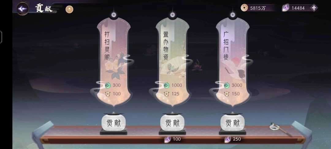 灵阁贡献到后期可以选择250妖魄的选项,因为后期灵阁商店里的神话装备仅需3万灵阁币,而250贡献就能兑换3千灵阁币,这样算下来,只需要贡献10次就能攒够3万灵阁币,总共才花费2500妖魄。但普通商铺购买神话装备却要3千妖魄,这么对比下来,选择灵阁贡献的方式显然更划算,何乐而不为呢?