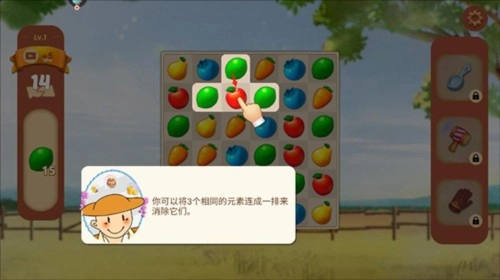 要是暂时找不到能直接消除的对象,不妨先从其他水果入手进行消除操作。