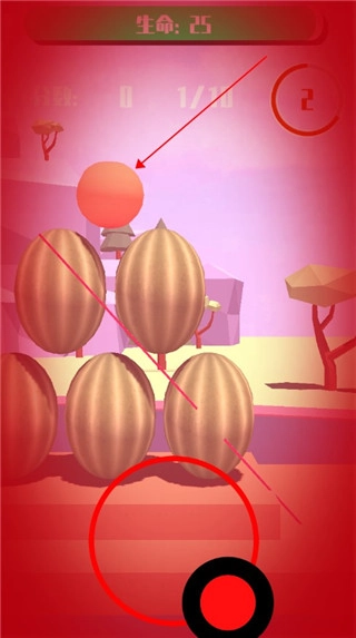 当水果出现时,我们长按屏幕来调整切割的角度,之后松开手指就能完成切割操作。