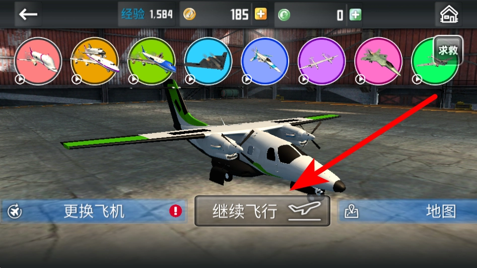 1. 进入游戏后,找到并点击“继续飞行”按钮,由此开启救援飞行任务。此步骤至关重要,它是进入实际飞行操作的关键。点击该按钮后,就能操控飞机驶向救援区域,从而开启模拟救援的核心流程。