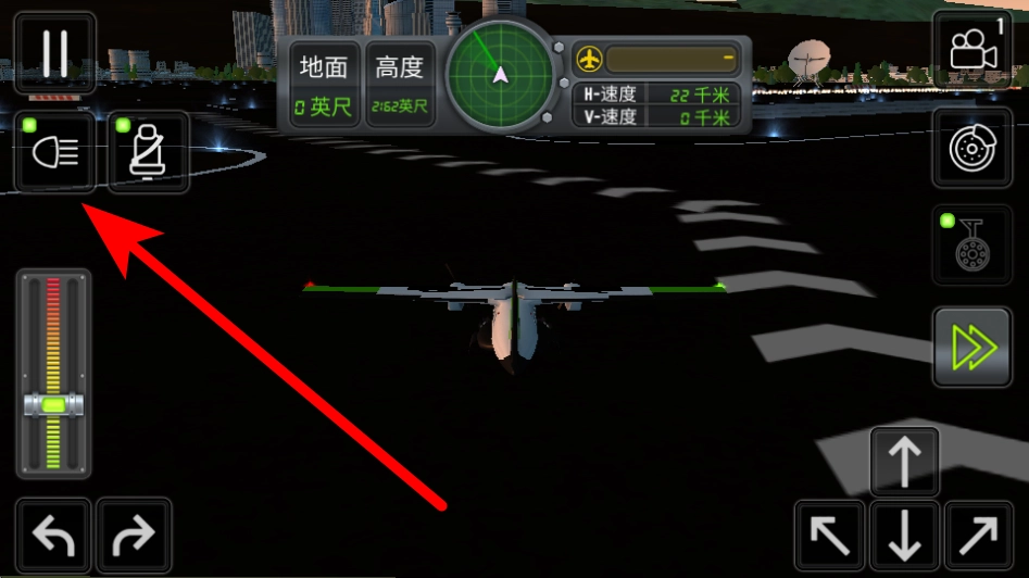 2、在飞行过程里,点击左侧的灯光按钮,即可开启飞机灯光。此操作不但能够提高在夜间或者复杂天气状况下飞行时的可见度,而且在救援场景中,还能发挥定位与警示的作用,以保障飞行安全顺利开展。