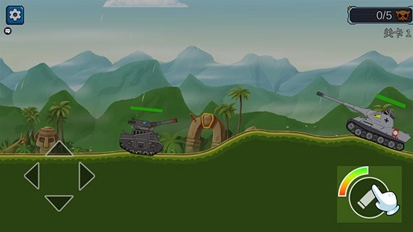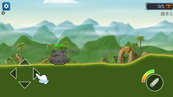 关卡1中,左下角的左右按钮用于操控坦克前后移动,上下按钮则用来调整坦克的发射方向,右上角的标识显示当前敌人的数量。