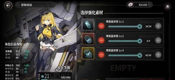除了通过挑战关卡获取经验外,给玩偶投喂各类晶体管道具也是提升等级的高效途径。