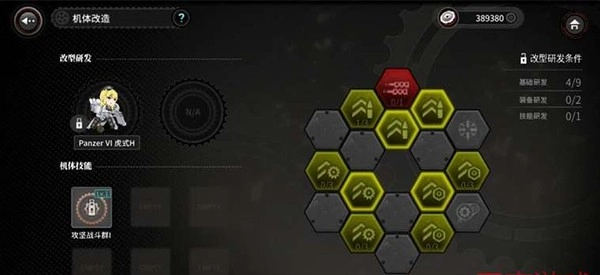 每款人偶都配有图示的改造分支系统,改造过程中会解锁专属新装备,界面右上角标注着进行改型研发所需满足的各项条件。