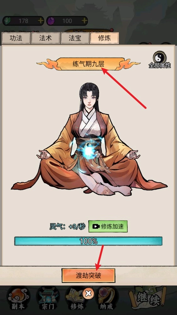 当等级提升到境界的顶点时就需要进行渡劫突破了。