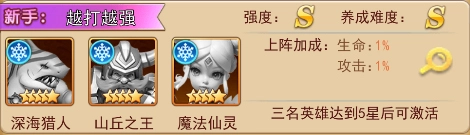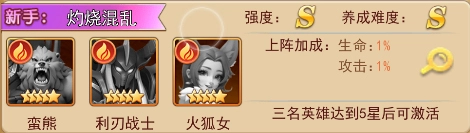 组合说明:森林长老与狂野战姬配合首回合能够制造大量群攻伤害,可大大提高通关效率!推荐初入游戏的新手培养;