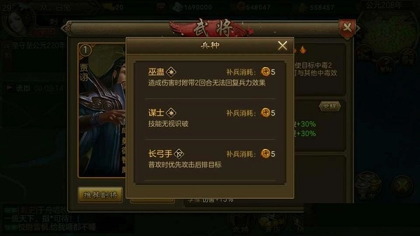 贾诩兵种【巫蛊,谋士,长弓手】