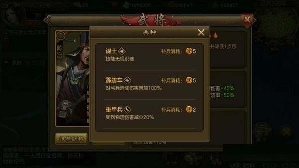 推荐:长弓手(如今玩家常把强力武将放在后排,而这个兵种具备攻击后排的能力)
