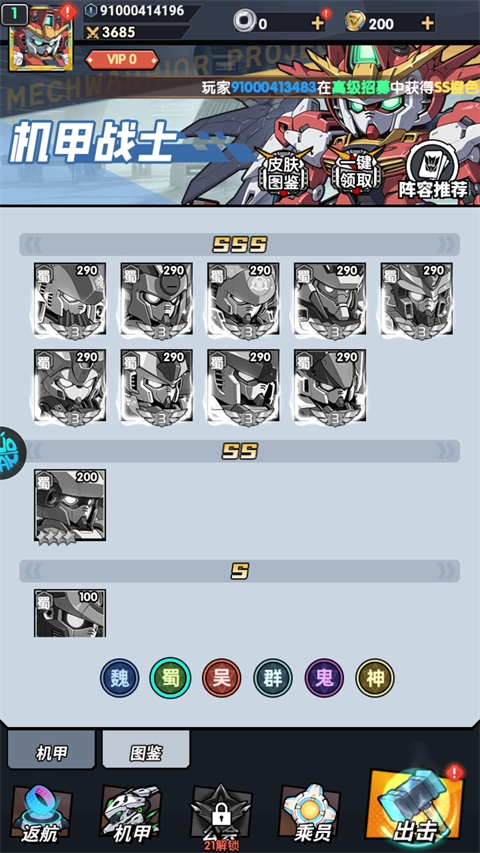 这款游戏以三国为题材,属于机甲类游戏,其游戏机甲角色总共分为六大系。