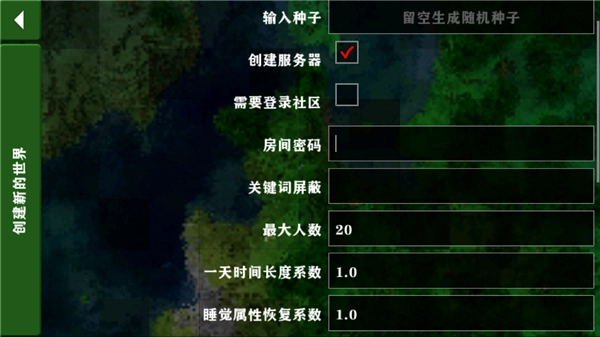 点击创建服务器并设置房间密码。