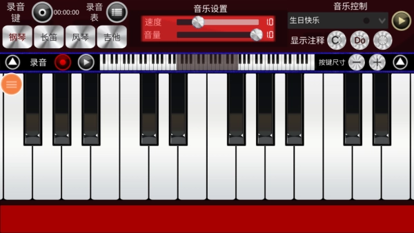 点击画面左上角的录音按钮,即可进入录音模式,这样就能把自己弹奏的曲目保存下来了。
