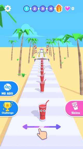 玩家需要精准收集同色果汁来壮大自己的队伍,一旦误触其他颜色或障碍物就会导致体积缩小,这对反应力和判断力是极大的考验。2、游戏采用一目了然的卡通画面风格,色彩亮丽明快,各种果汁和陷阱造型可爱,视觉效果直观舒适,让玩家能瞬间聚焦于赛道挑战。3、操作极其简单,只需单手滑动屏幕即可控制果汁左右移动,上手零门槛,但要想取得高分却极具挑战性,完美契合休闲游戏的本质。