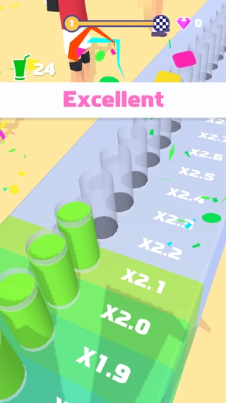 3. 这是对玩家快速反应与精准操作能力的终极考验,需要在极短的时间内做出正确判断,趣味性与挑战性兼具,让人沉浸其中无法自拔。玩家能够借助滑动屏幕的方式移动果汁杯,用指尖把控好左右方向,巧妙避开障碍物以及各种类型的果汁。