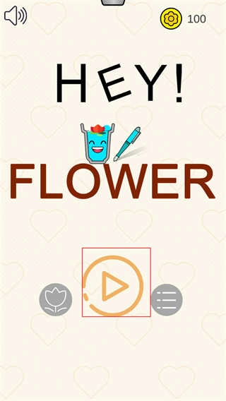 玩家完成游戏后回到游戏主界面,点击中间的播放按钮即可进入游戏关卡,开启用杯子接水种花的挑战。