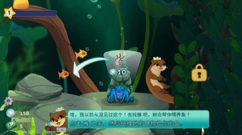 把得到的气泡币交给“雅”,雅就能给我们提供更多鱼食了。