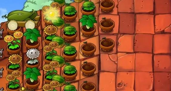 最难的要数4列,由于它是紫卡位,所以得拼手速(也能暂停凑),先放下南瓜头,等梯子僵尸靠近时赶紧放下西瓜投手,在梯子僵尸放梯子之前种下冰西瓜,这样就能给紫卡搭梯了,完成后就卸磨杀驴,其他情况也是如此。