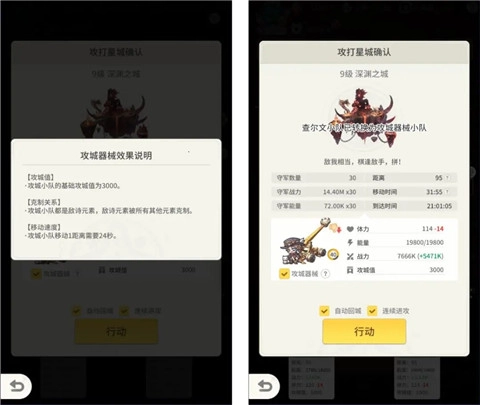 攻城器械:勾选该选项后,你的小队将转化为敌诗系;敌诗系会受到其他所有元素的克制,移动时消耗的时间增加一倍,但攻城值会提升至原先的3倍(例如从1000增长到3000)。