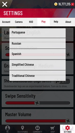 点击下方的“settings”选项,接着点击“play”,之后选择“language”,向下滑动页面找到“simplified chinese”,这样就能将语言切换成简体中文了。