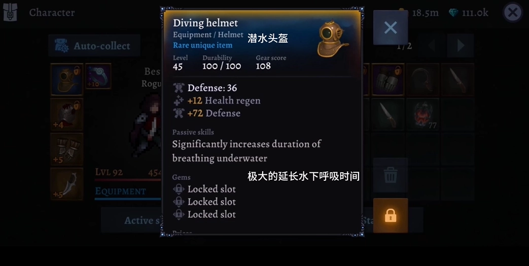 佩戴潜水头盔能够延长在水下的呼吸时长,借此就能前往水下集市选购一些珍稀的食品与装备。